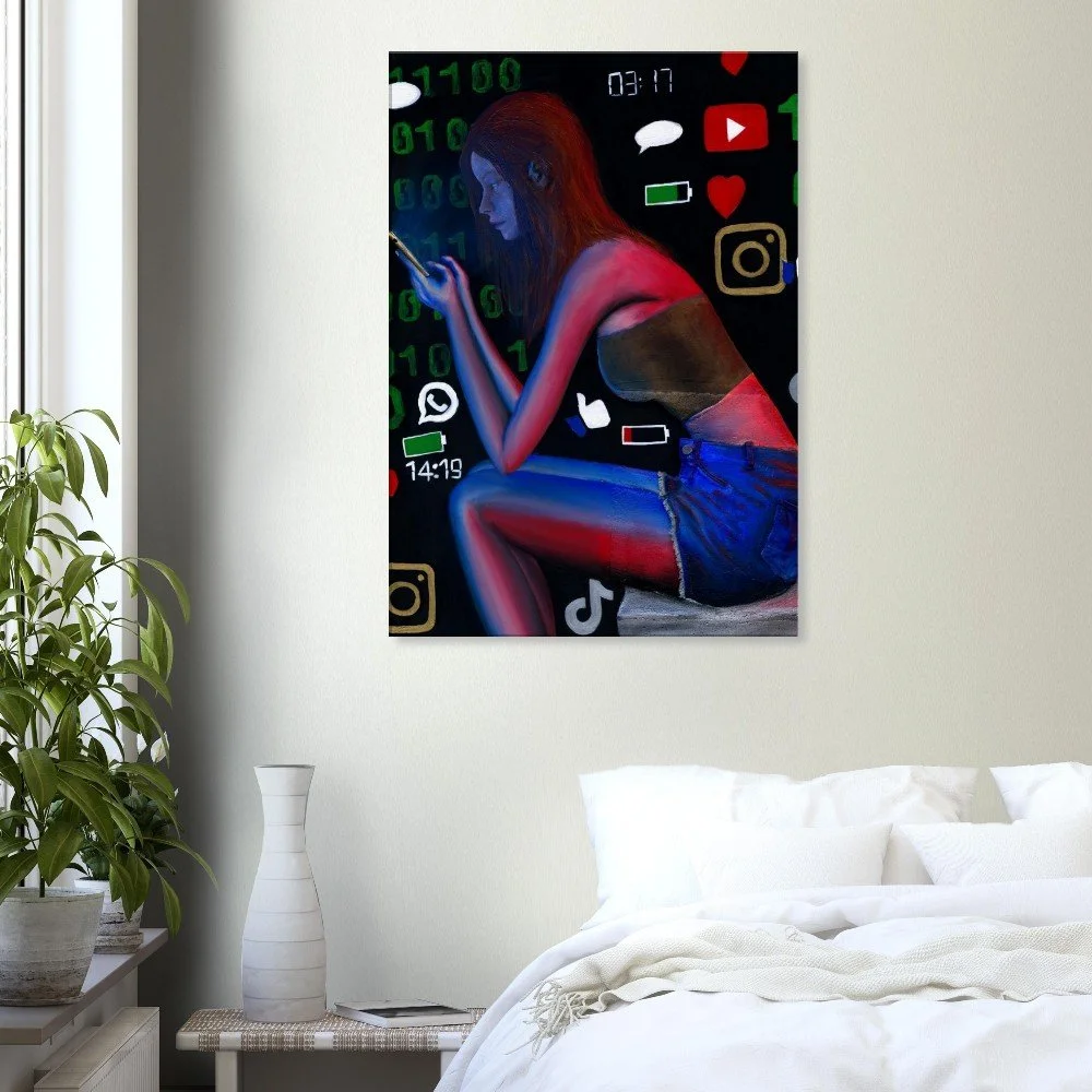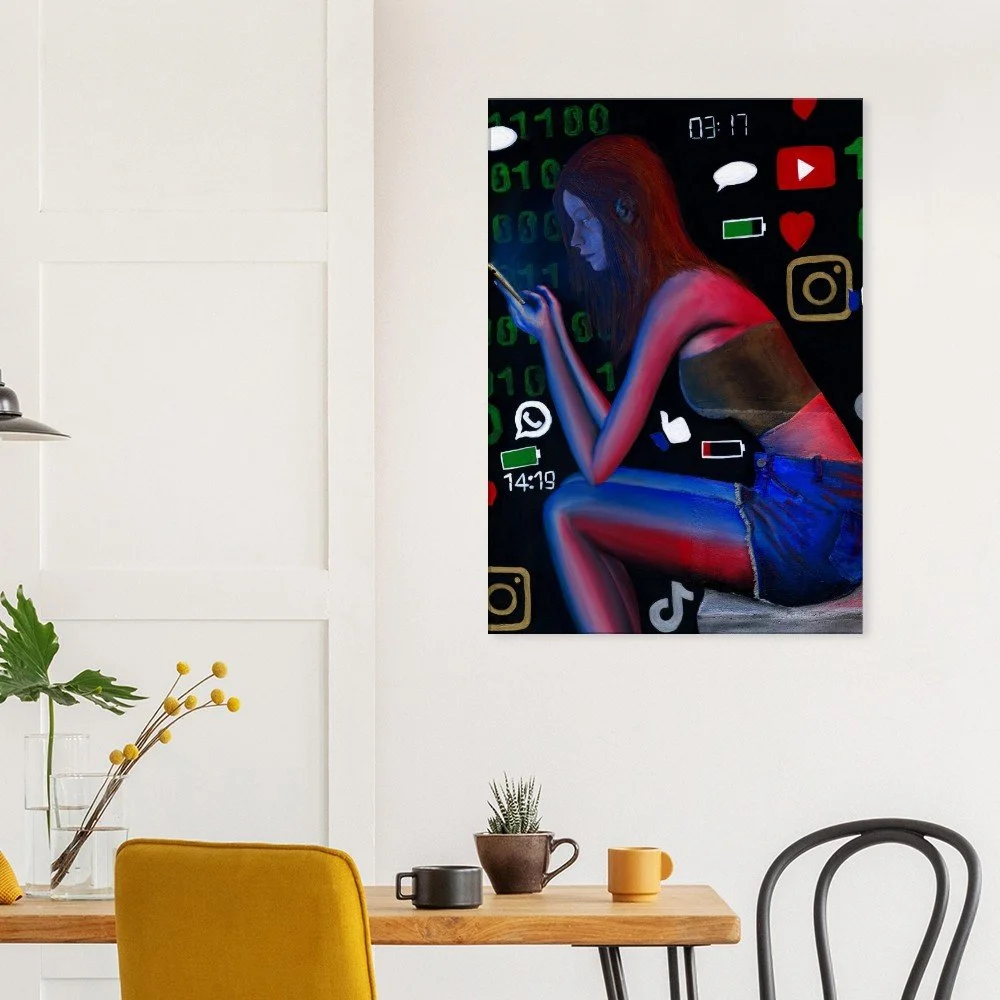 Dieser hochwertige Leinwanddruck basiert auf dem Originalwerk „Digitales Gefängnis“ von Atelier Luri. In Premiumqualität produziert – ideal für Sammler und Liebhaber gesellschaftskritischer, moderner Kunst.